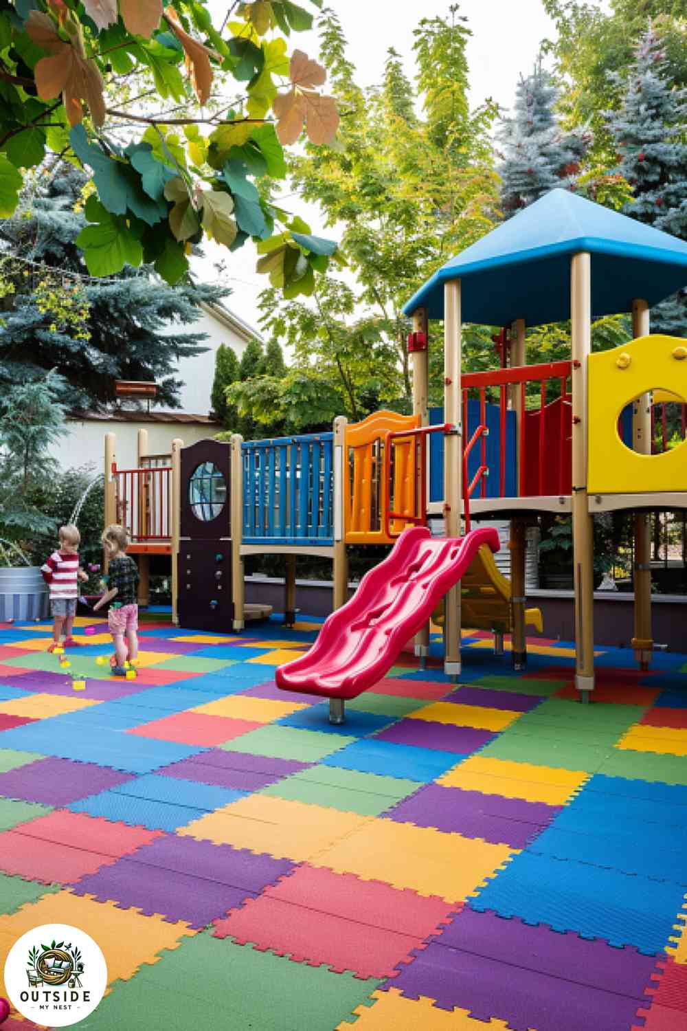Turn your outdoor space into a fun and safe play area with interlocking patio tiles. These DIY-friendly tiles come in vibrant colors and are made from a safe rubber material, perfect for an afternoon of play. Plus, they’re easy to install and maintain, making them a great choice for busy families.