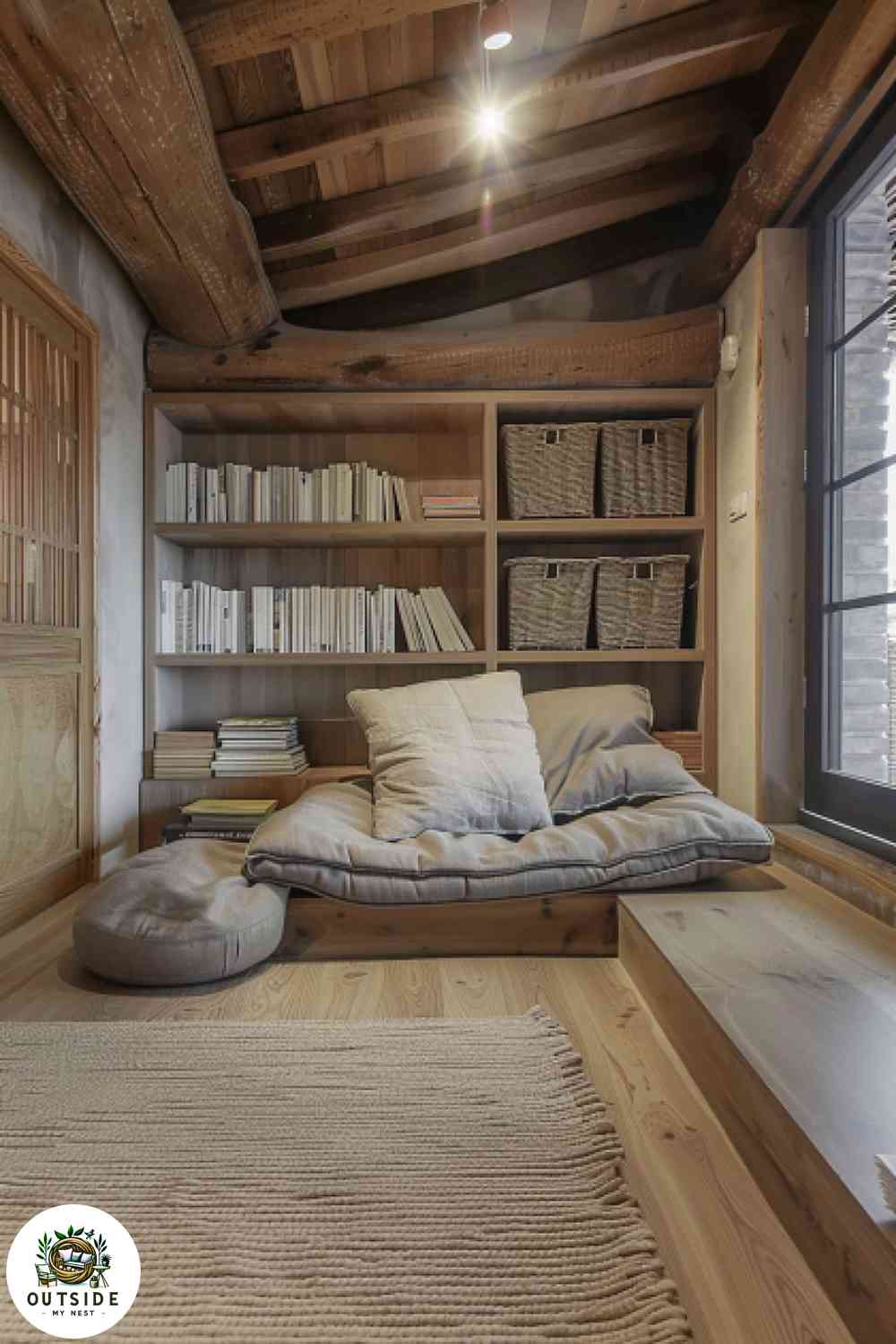 Transform your she shed into a minimalist Zen den with bamboo shelving and muted colors. This serene reading area promotes peace and clarity, making it the perfect spot for contemplative reading.