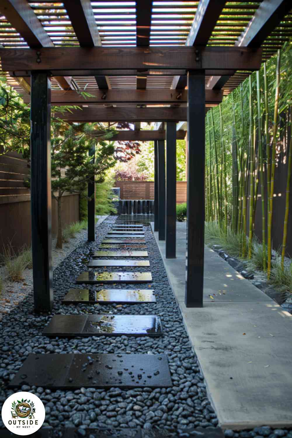 Minimalist Pergola with Zen Garden